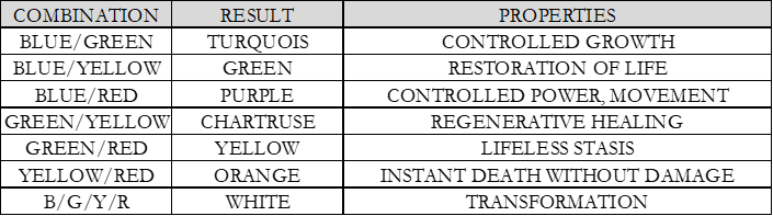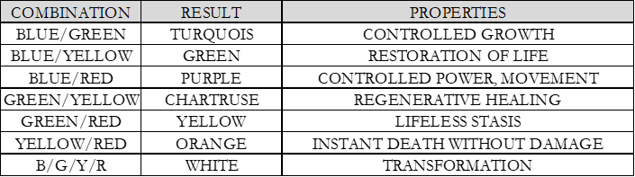 The various forms of magic existing on Aertu manifest themselves as colors to practitioners and occasionally, at high intensities, non-gifted onlookers. Listed below, are the various colors and their attributes.